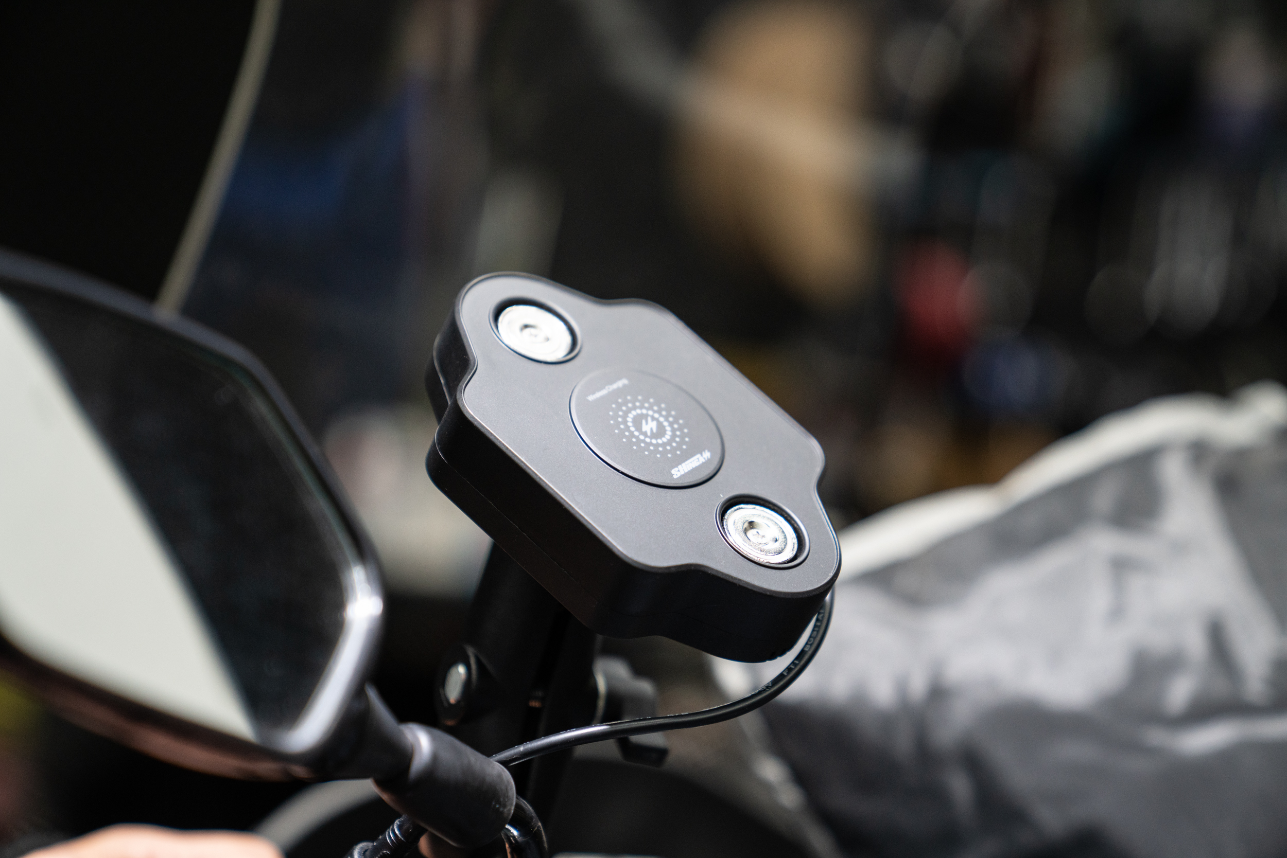 이건 차주가 직접 구매해 온 배달대행 전용 거치대이다. 자석을 통해 충전하는 방식이 아닌 거치대 가운데의 무선 충전부를 이용하는건데 계절 상관없이 운행하는 라이더들에겐 딱히 좋은 제품은 아니다. 영하권에선 스마트폰 온도 저하 특성으로 인해 무선 충전부가 비활성화 되거나 충전 속도가 매우 느려지게 된다. 때문에 이러한 방식을 원활하게 운용하고자 한다면 반드시 유선 퀵 차지 포트를 추가로 증설해야 겨울철 역방전을 방지할 수 있다. 해당 제품의 브라켓에 호환되는 일체형 충전기는 탈리스만 USB 퀵차지가 잘 맞을 것이다.
