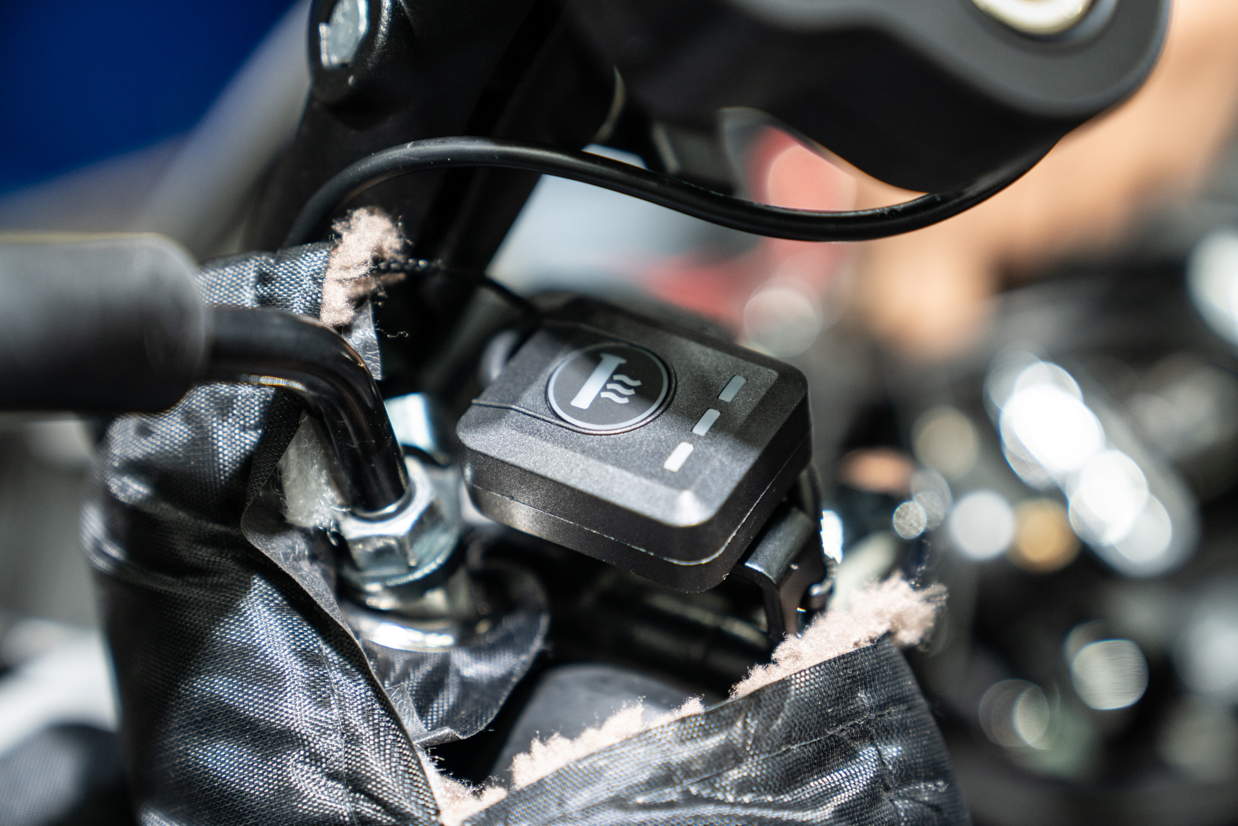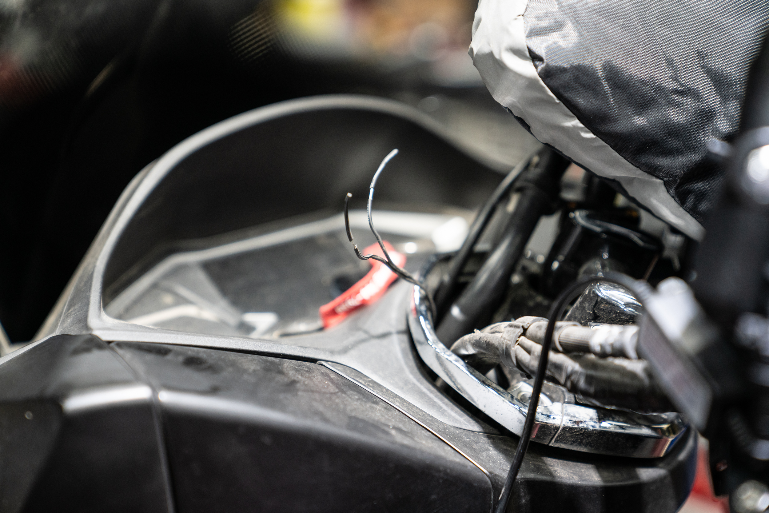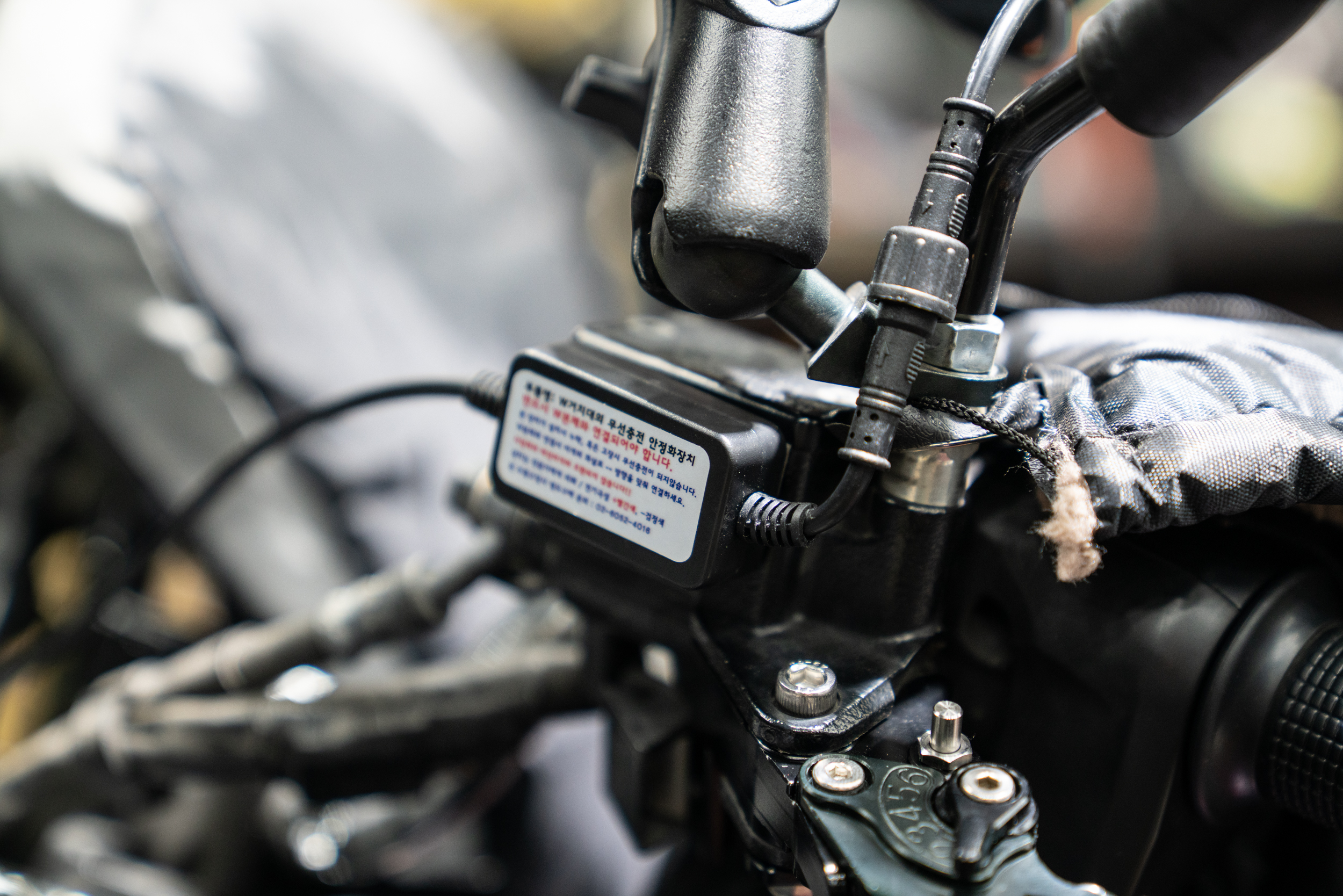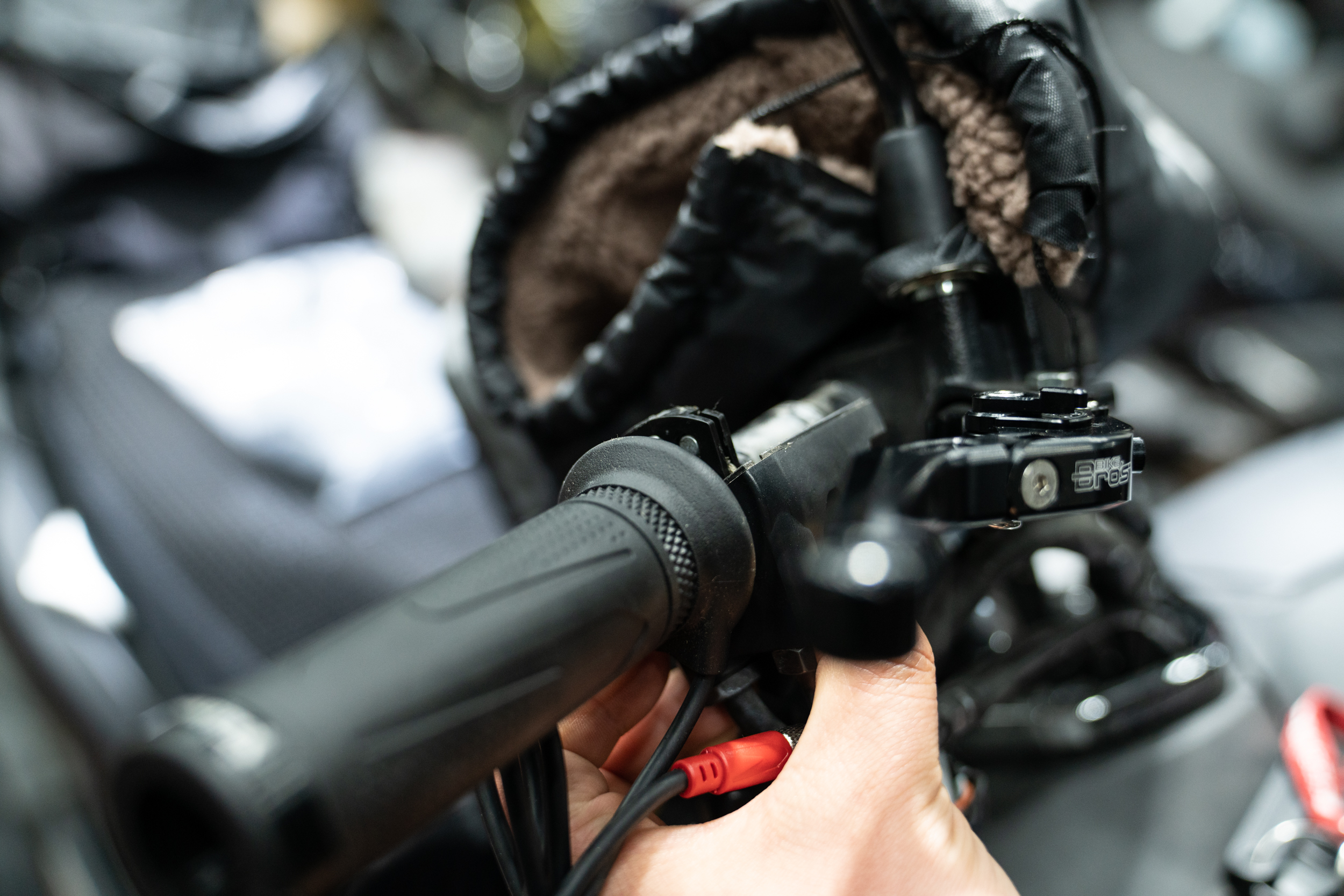 모든 열선그립 장착에 있어 가장 많은 불량을 유발하는 악셀 그립쪽 전원 공급선의 모습이다. 토시를 겸행하고 있는 만큼 일반 세팅보다 조금 더 유격을 주었다. 이후 차주에게 해당 부분에 대한 주의점을 명확히 하여 단선 같은 불량이 생기지 않도록 안내하였다. 물론 탈리스만은 부분 부속만 저렴하게 공급되는 만큼 추후 문제가 생겨도 단순 교체로 유지 보수가 가능하다.