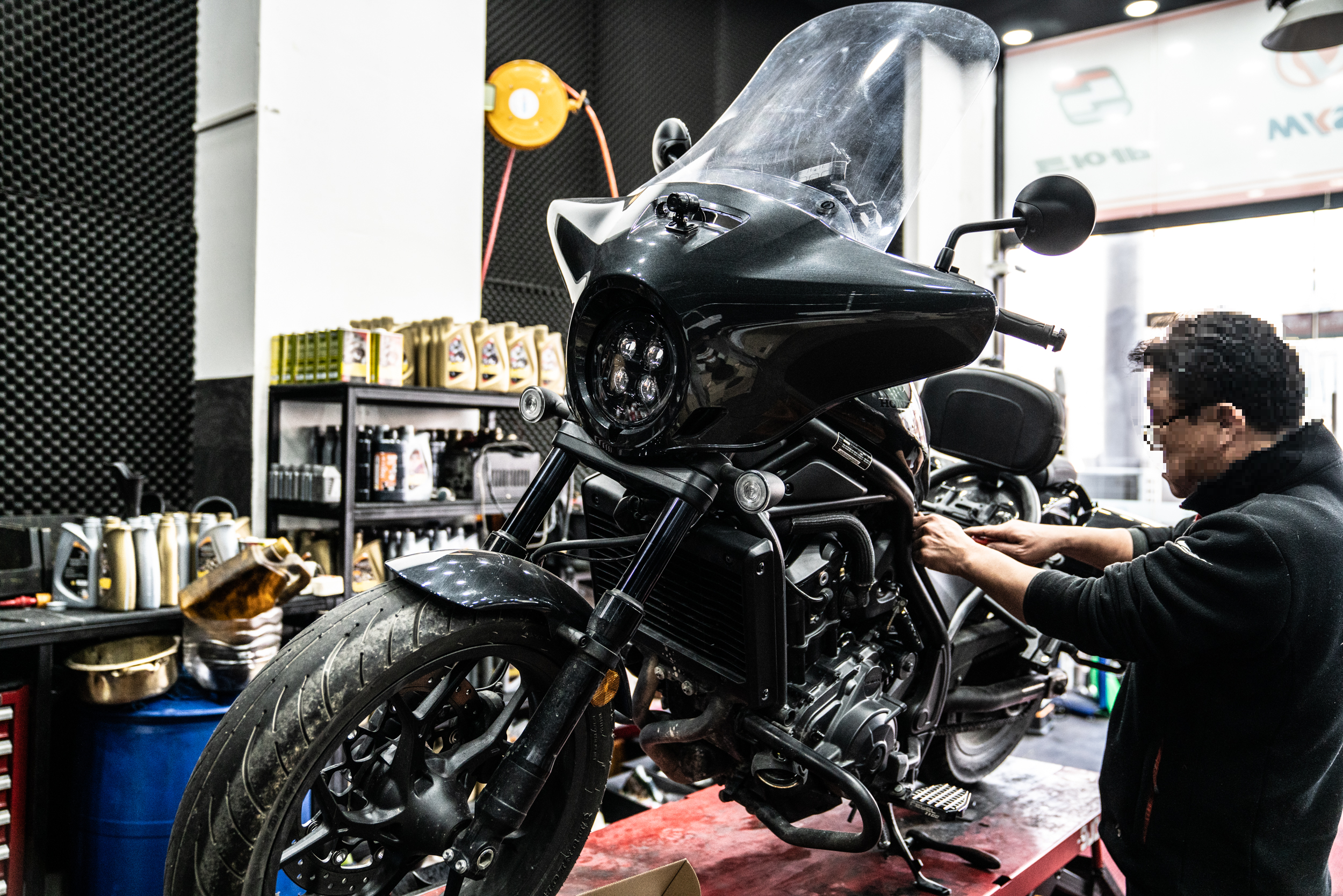 이상 탈리스만 안개등 제조사이자 총판인 성남 에스바이크에서 혼다 레블1100DCT에 대한 보조 LED 등화장치 작업기였다.
