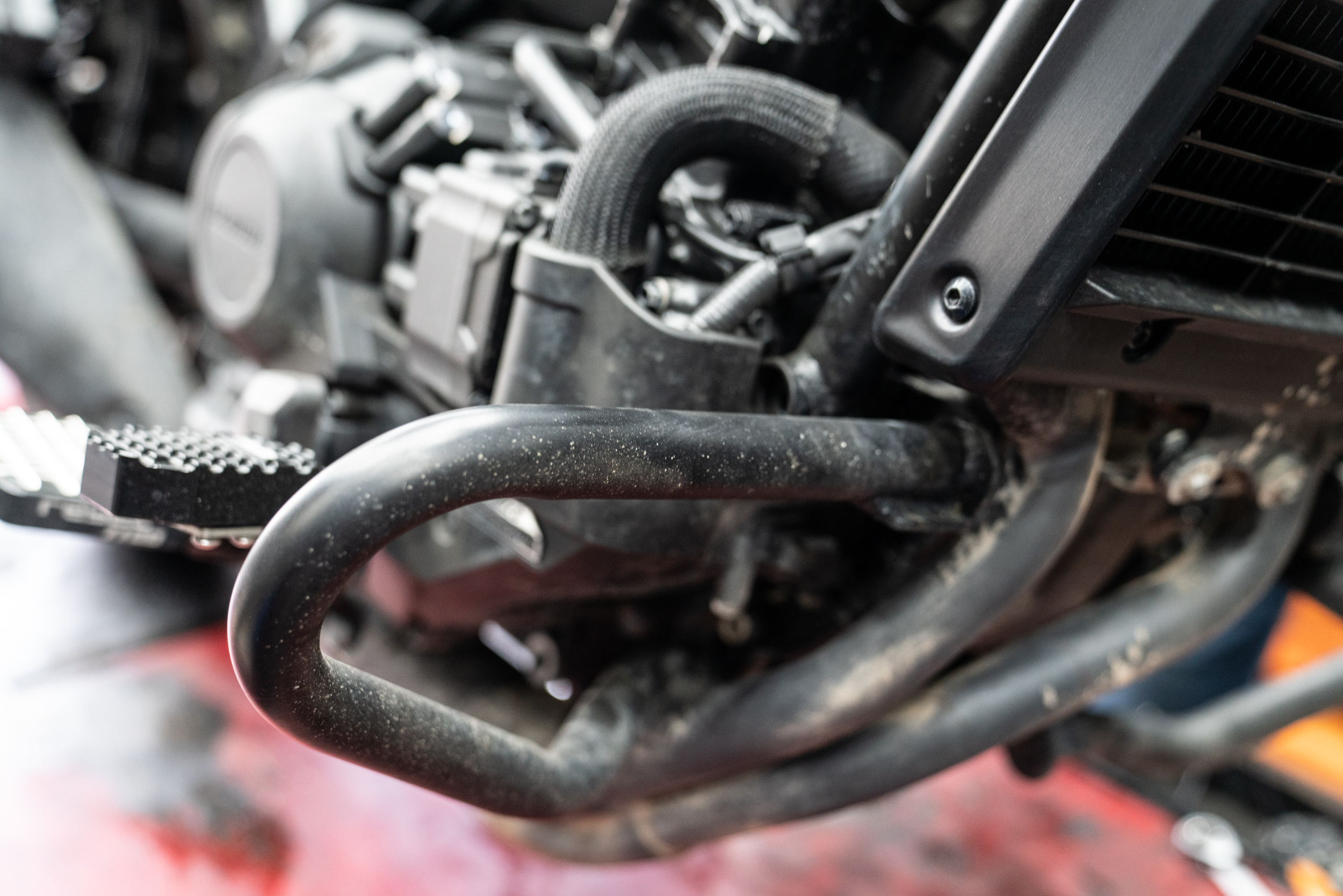앞서 말한 엔진가드에 탈리스만 클램프킷이 올랐다. 안개등을 마운트하기 위한 최소한의 브라켓 장착이다. 현재로써는 아직까지 이러한 방식으로 시공을 진행하는 것을 으뜸으로 한다. 가장 안정적이고 좋은 광원 효율을 뽑아 낼 수 있다.