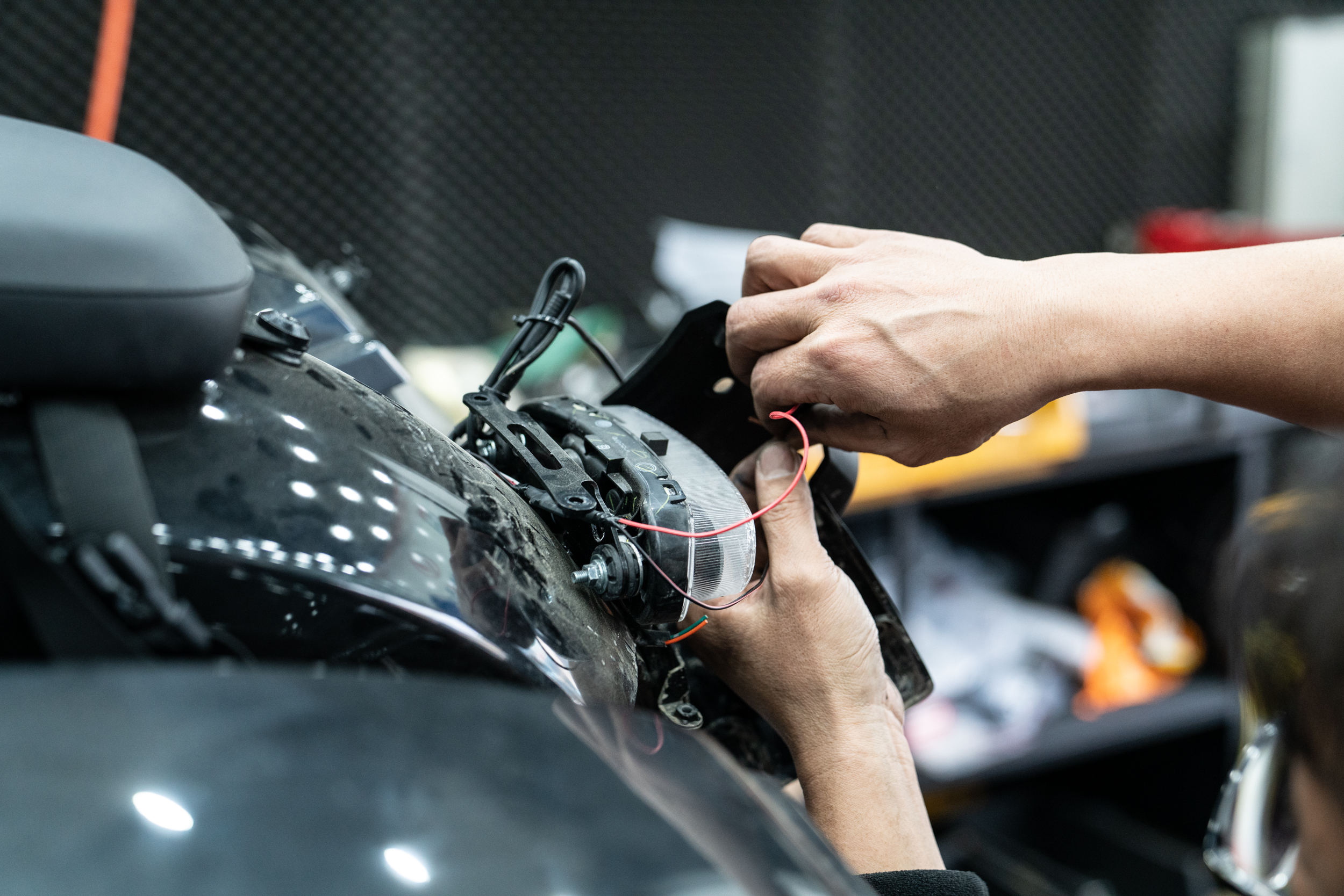 해당 작업은 구현을 하려면 깜빡이 및 브레이크등의 배선을 모두 찾아야 한다. 이러한 배선들은 차량에 따라 후미 휀다를 모두 들어내야만 적출이 가능한 경우고 있고 해당 차량처럼 돌출 된 테일 앗세이 안쪽에 숨겨 놓는 경우가 있는데 역시나 작업성은 후자가 수월하고 시간과 공임도 대폭 줄일 수 있다.