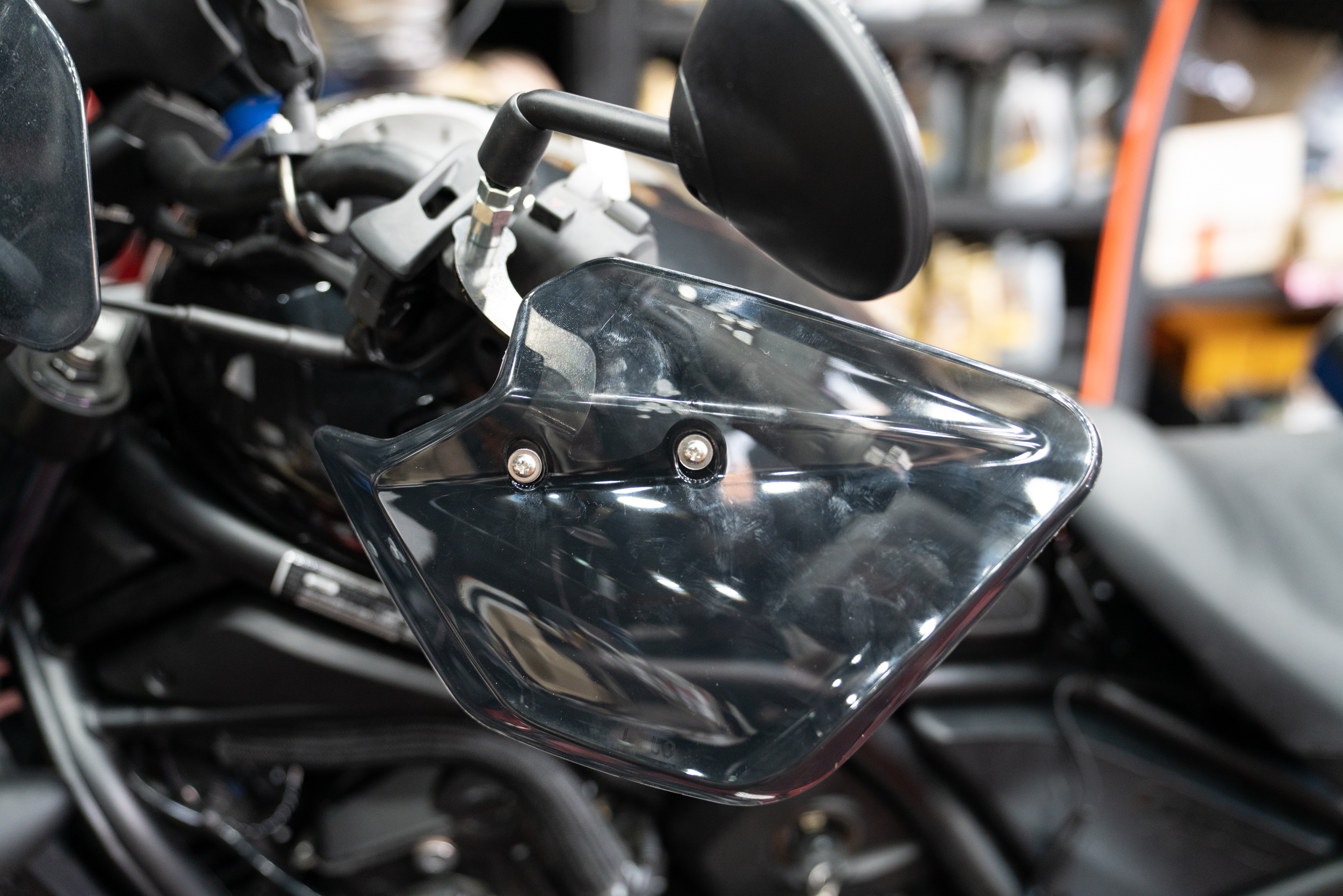 요청이 있어 너클가드도 간섭없이 달아 드렸다. 블레이드사에서 나오는 제품으로 퀄리티가 좋은 제품이다. 원래는 PCX나 엔맥스용으로 제작된 제품이나 핸들바 상부에 장착되는 백미러가 있다면 거의 맞는 편이다.