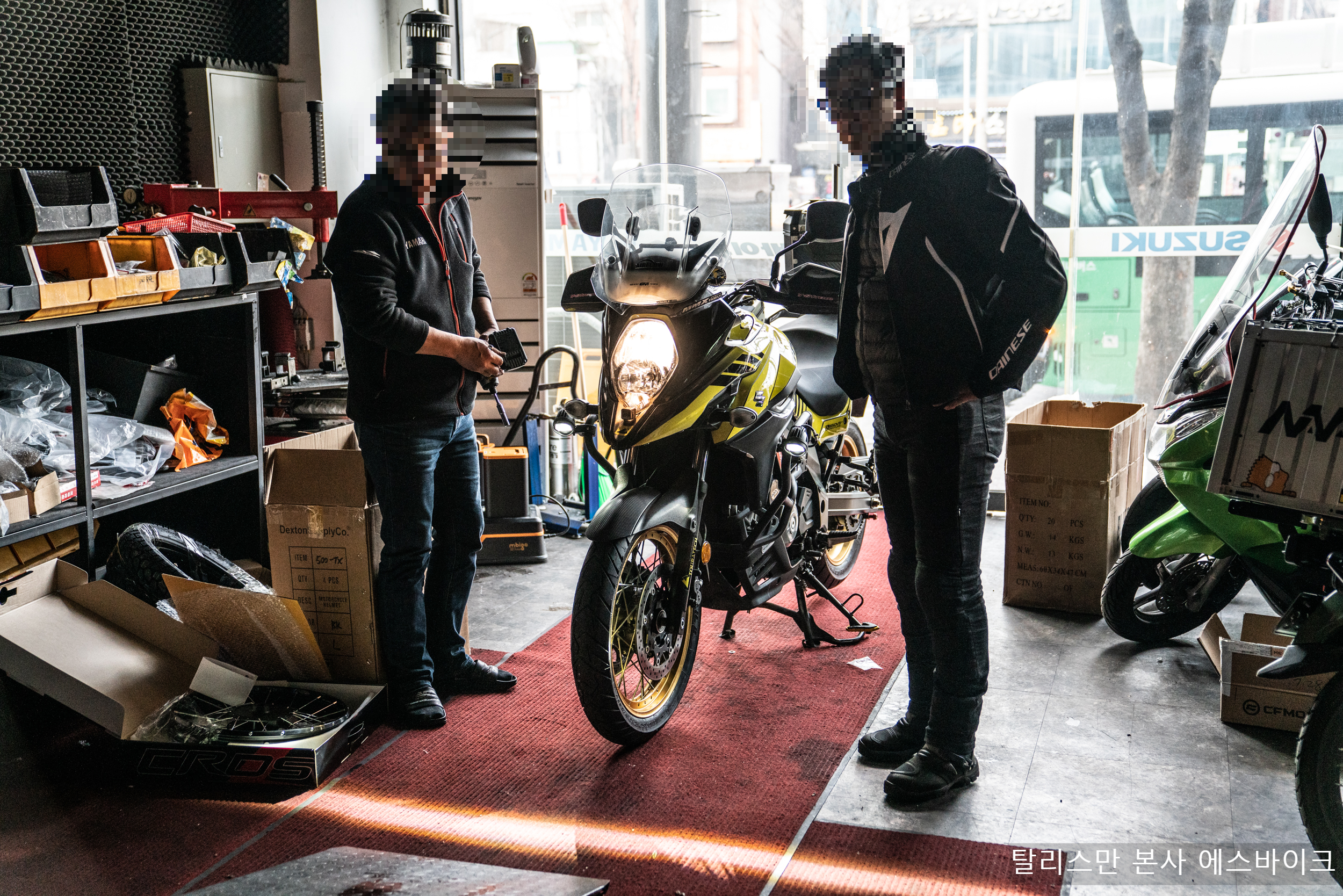 이상 탈리스만 안개등 본사인 성남 에스바이크에서 스즈키 브이스트롬 650에 대한 구조변경 안개등 R19R 시공 작업기였다.