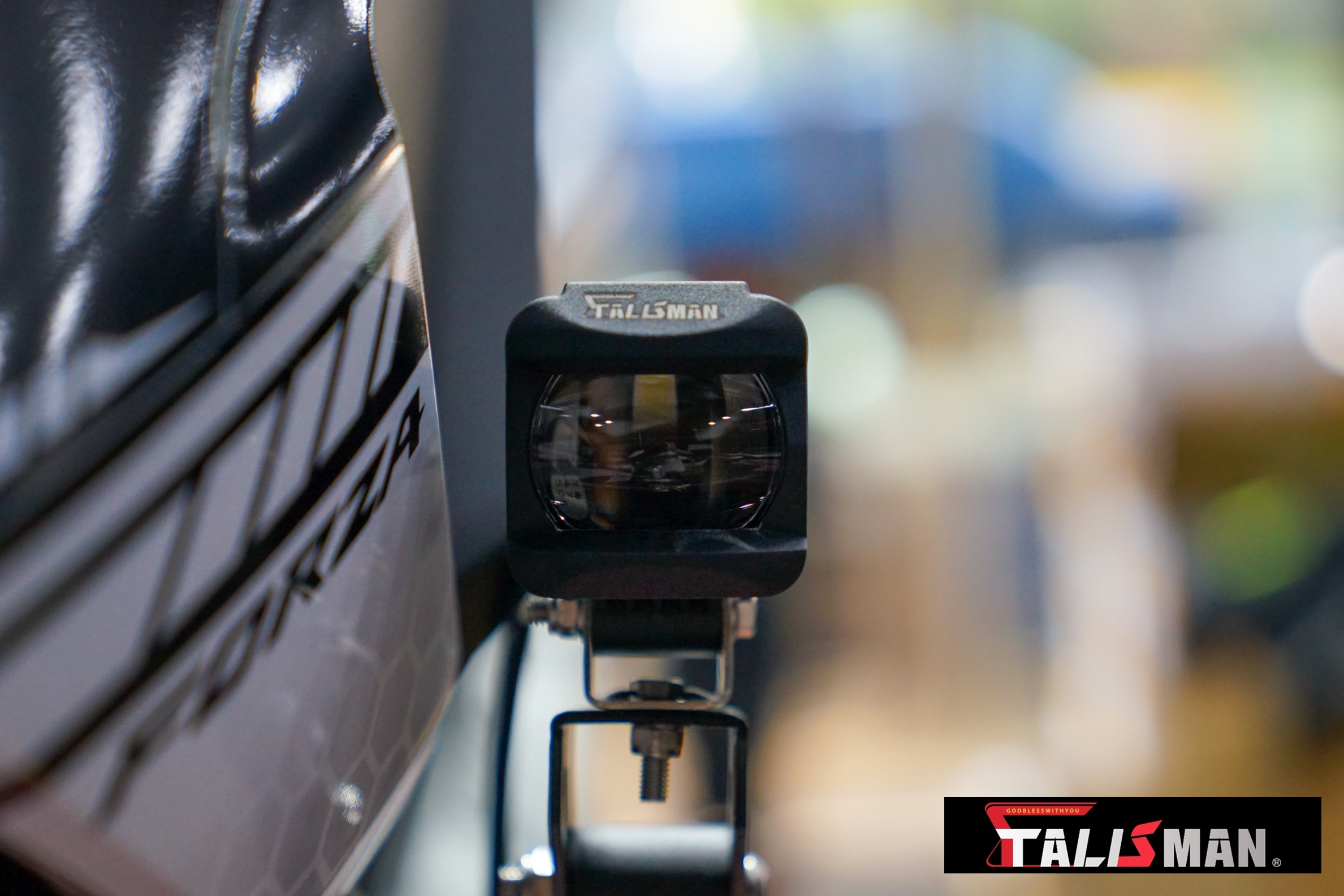 특히 포르자350에 대한 안개등 장착은 축심보 방식 외엔 이렇다 할 장착 거치점이 없는 것을 감안한다면... 위와 같은 상부 측면 전개 방식이 대안책으로 충분하다는 것이다. 해당 위치에 구조변경이 가능한 탈리스만 안개등과 같은 제품을 올리게 된다면 비록 범퍼 가드 자체에 대한 비용은 있겠으나 이로 인한 별도의 브라켓 비용을 줄일 수 있고 무엇보다 장착 위치 특성상 안개등의 광원 효율을 폭발적으로 끌어 올릴 수 있으며 또 한 장착 퍼포먼스에서 오는 측간 빵도 커진다는 것이다.